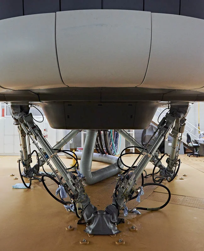 This is a training centre, teaching and refreshing pilots' flying skills for commercial Aeroplanes. All pilots have to pass a simulator test for the plane they fly, every year, and the centre is used by many different airlines, so we had a small time slot before the next set of pilots arrived.